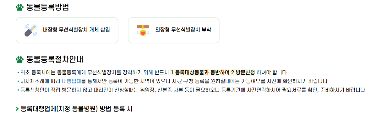 반려견 등록은 전국 지자체 지정 동물등록 대행기관에서 가능합니다. 등록 방식은 다음과 같습니다.