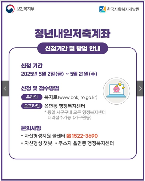 - 신청 후 정부 지원금은 자동 입금되며, 자산 형성 목적 외 사용 시 환수 조치될 수 있음